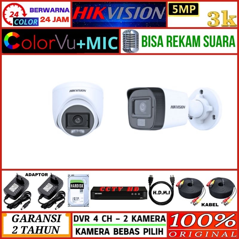 PAKET CCTV 2 KAMERA HIKVISION AUDIO COLORVU KOMPLIT – 5MP 3K