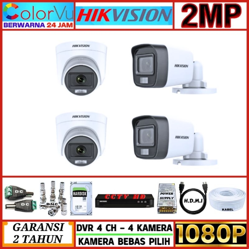 - 4 KAMERA CCTV HIKVISION 2MP - TURBO HD 1080P 24 JAM BERWARNA