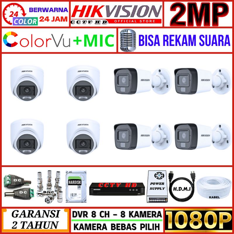 PAKET CCTV 8 KAMERA HIKVISION COLORVU AUDIO KOMPLIT – 2MP TURBO HD 1080P